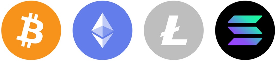 Currently supported tokens are Bitcoin (BTC), Ethereum (ETH), Litecoin (LTC), and Solana (SOL).